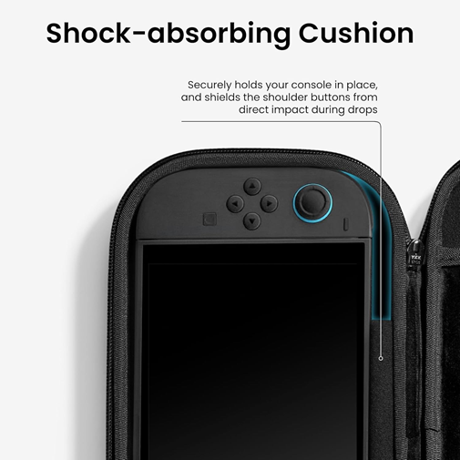 Elegantan i izdržljiv carrying case za Nintendo Switch 2 (model 2025), namenjen bezbednoj zaštiti konzole tokom putovanja, skladištenja ili svakodnevne upotrebe. Kućište je napravljen sa tvrdom spoljašnjošću i mekanom unutrašnjošću, uključuje mesto za do 12 kartica igara i dodatni prostor za osnovne dodatke kao što su kablovi ili punjač. Pogodan je za distributere gejming dodataka, prodavnice konzolnih proizvoda i online kataloge.